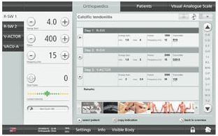Màn hình cảm ứng chạm kích thước 10” inches được kết nối với thiết bị sóng xung kích bằng cáp USB và được bổ sung các tính năng hữu ích: khác với các thiết bị điều khiển được gắn thêm khác, nó cung cấp thêm hệ thống quản lí dữ liệu bệnh nhân cũng như các thông số điều trị được khuyến nghị bởi những người đã có kinh nghiệm sử dụng và được hỗ trợ bằng video và hình ảnh hướng dẫn.
