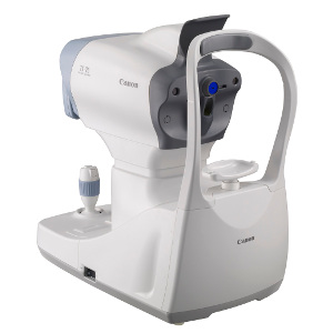 Máy đo nhãn áp không tiếp xúc, thường được sử dụng tại các phòng khám, sử dụng luồng khí nhẹ để đo áp lực trong mắt mà không cần tiếp xúc. Quy trình đo như sau: